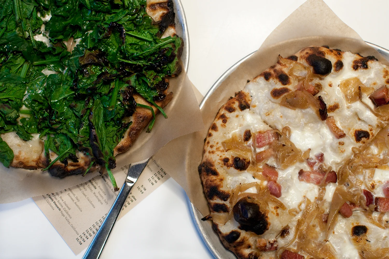 I asked each place how they achieve such great crust-sturdiness when the pizza at so many other Fancy Pizza restaurants can be soggy.